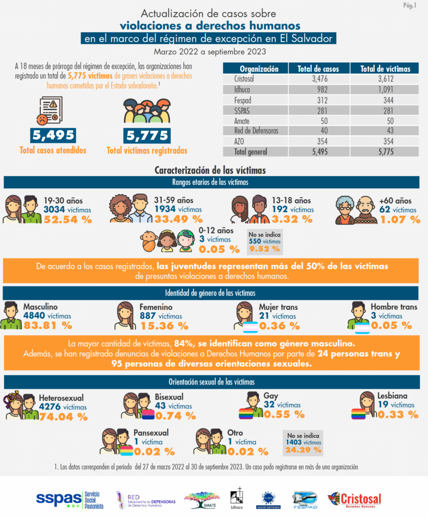 A 18 meses de prórroga del régimen de excepción, las organizaciones han registrado un total de 5,775 víctimas de graves violaciones a derechos humanos cometidas por el Estado salvadoreño. Aquí el detalle: