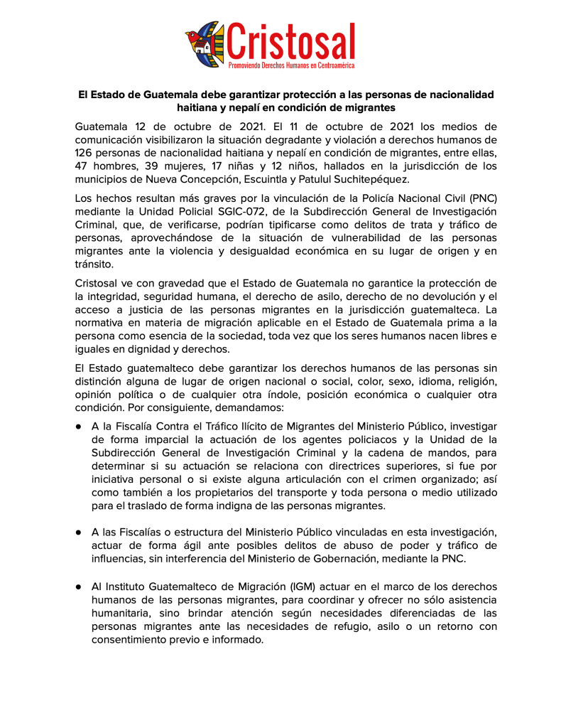 El Estado de Guatemala debe garantizar protección a las personas de nacionalidad haitiana y nepalí en condición de migrantes