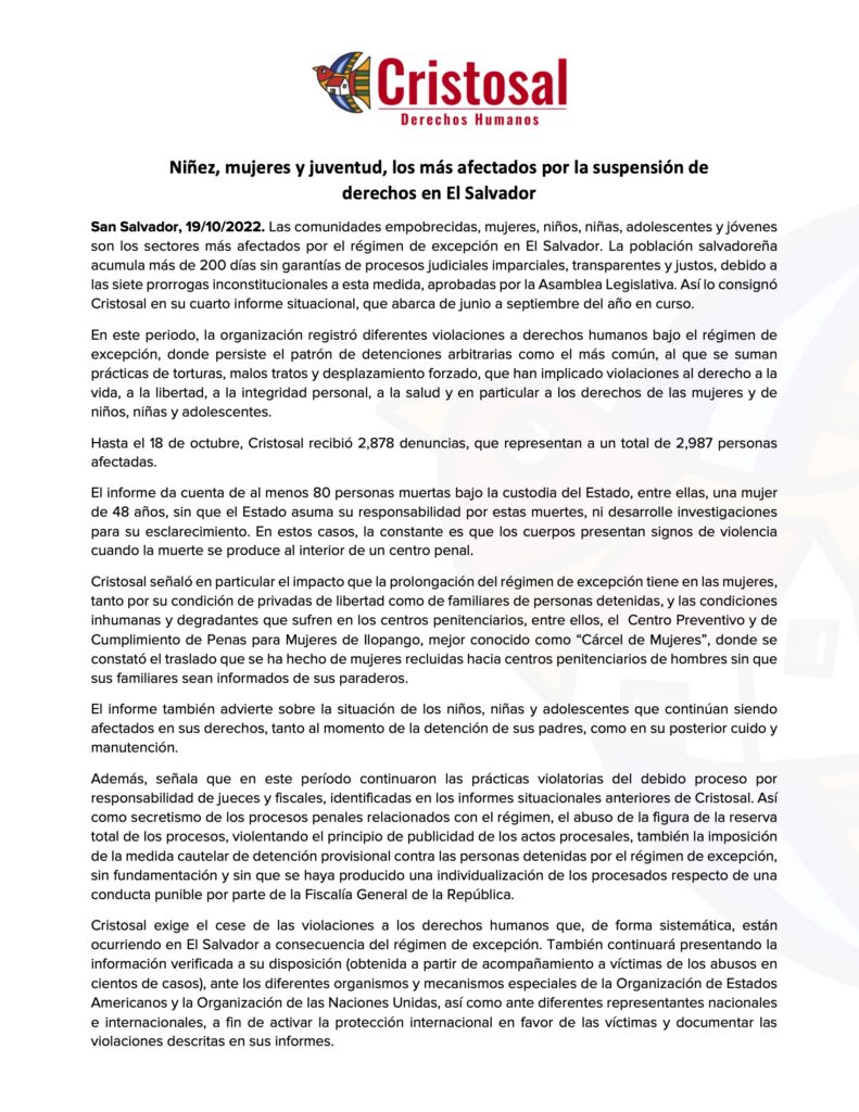 Niñez, mujeres y juventud los más afectados por la suspensión de derechos en El Salvador por régimen de excepción