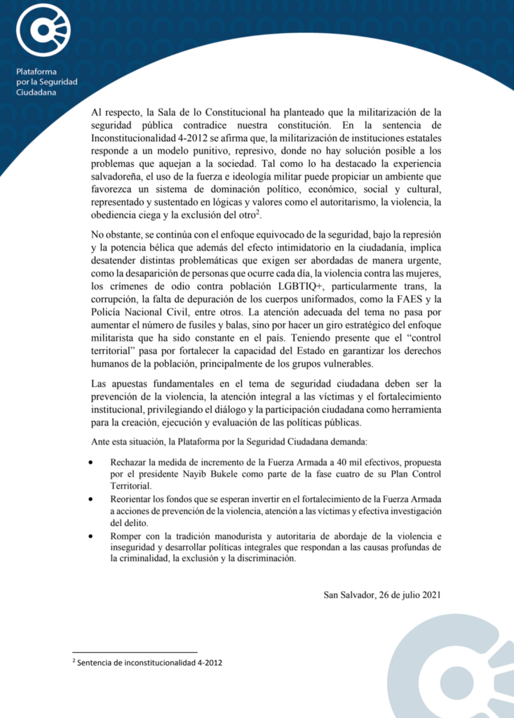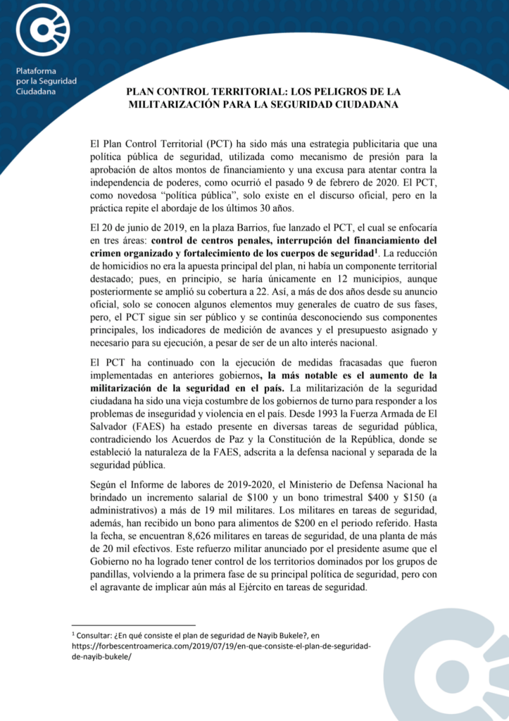 Plan control territorial los peligros de la militarización para la seguridad ciudadana. 26 de julio 2021
